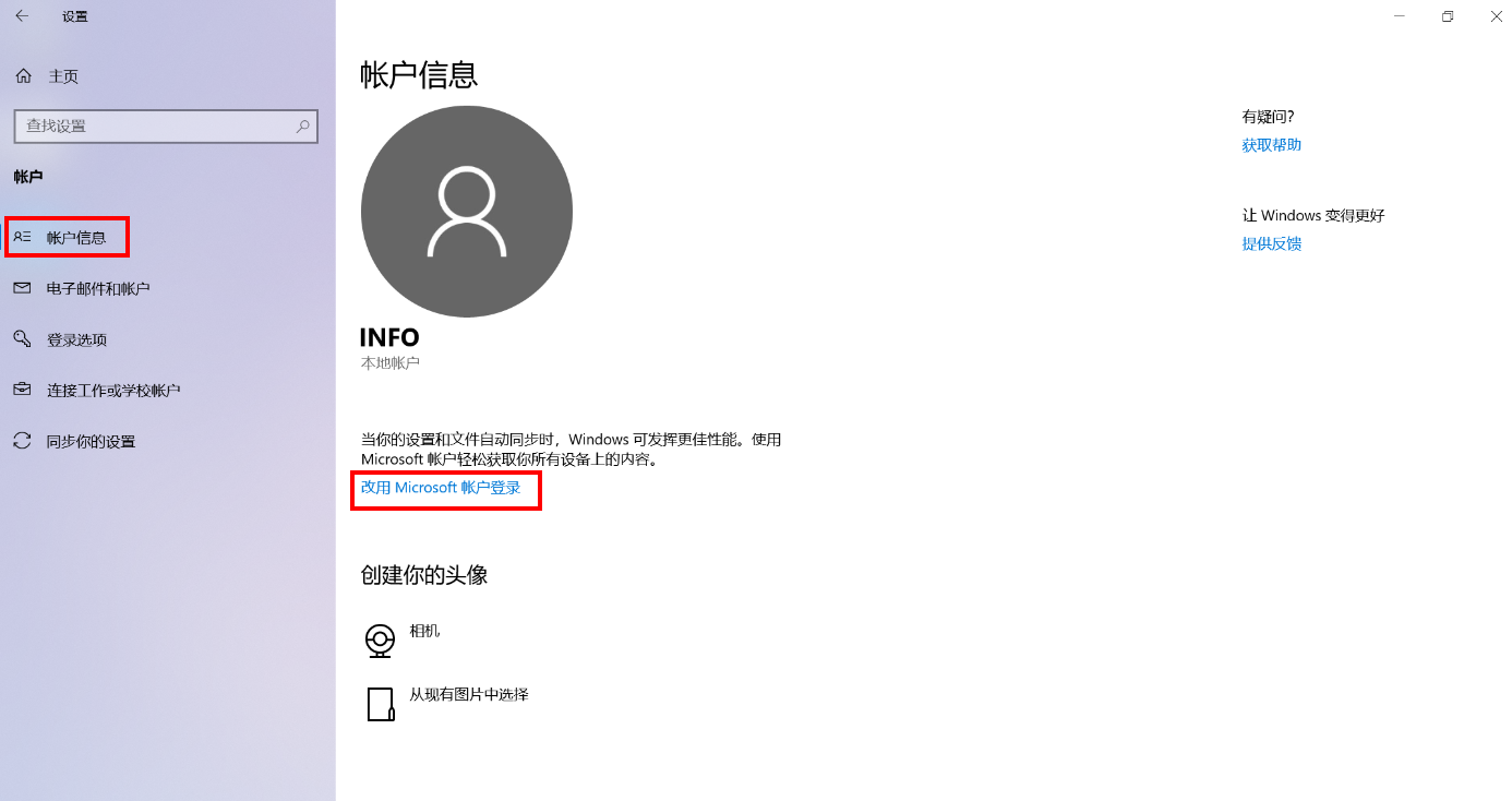 如何切换至Microsoft 帐户登录