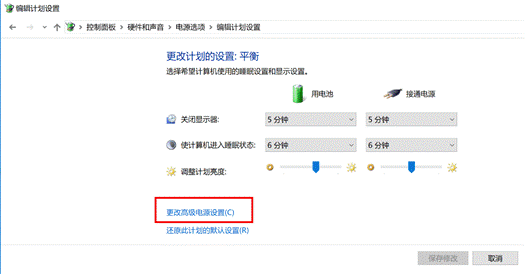 点击“更改高级电源设置”。
