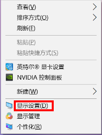 在桌面空白处点击鼠标右键,在弹出的窗口菜单里面选择“显示设置”。