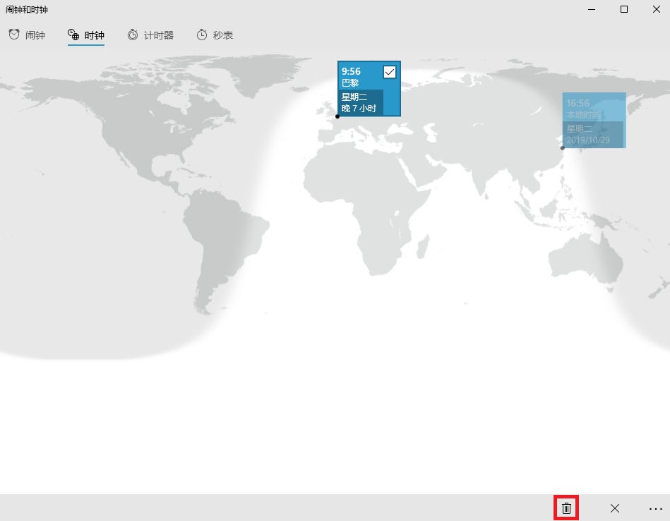 若要删除位置,点击右下角的“选择时钟”按钮,勾选需要删除位置的复选框。