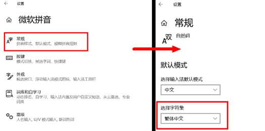 将输入法切换至微软自带输入法中文模式后,使用组合键“Ctrl + Shift + F”即可切换简体/繁体中文。任务栏上的简体/繁体中文输入法图标都为。