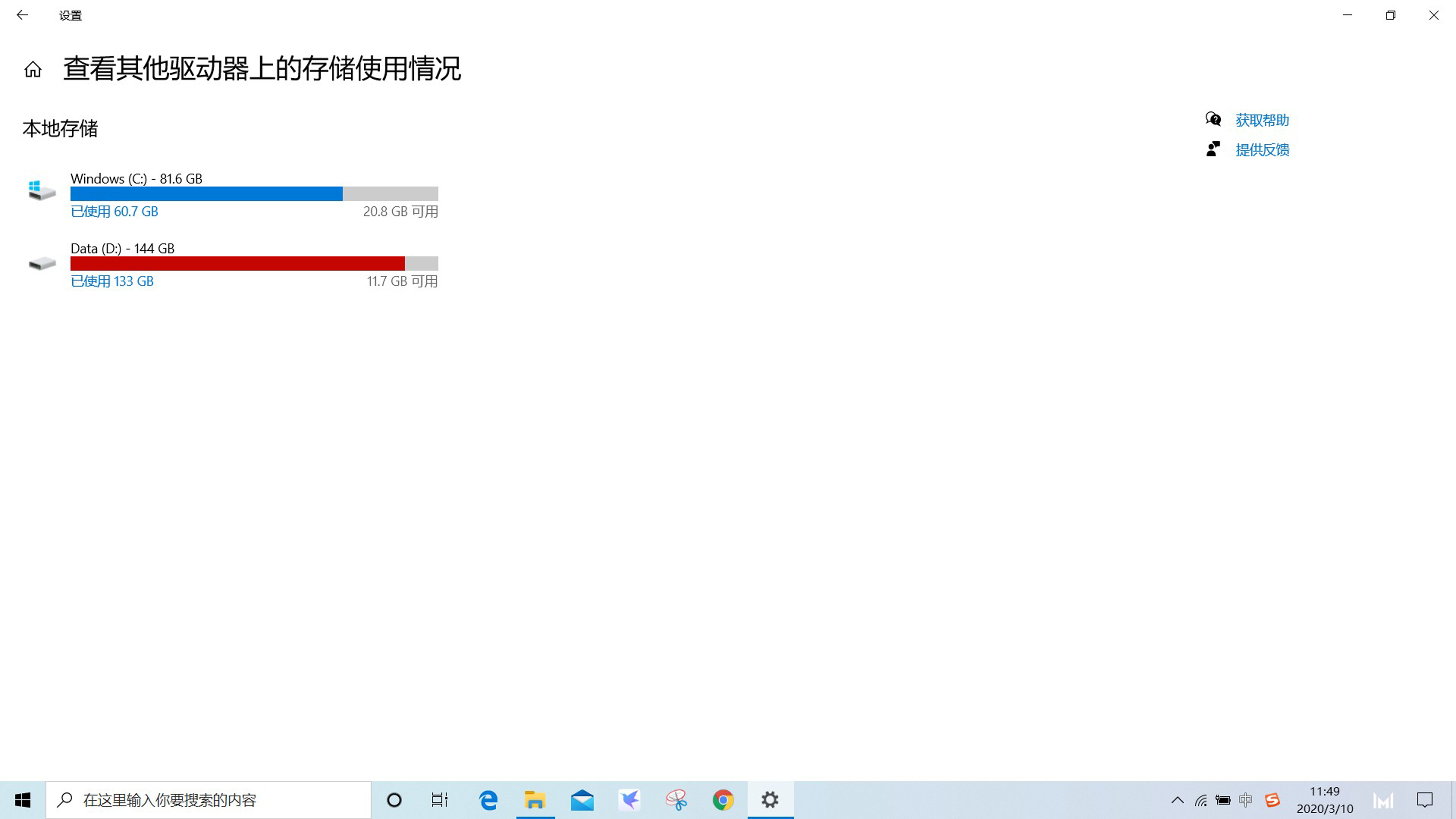 方法一:在任务栏中点击文件图标,在“此电脑”中选择您需要查看的磁盘,如 C 盘,右键点击该磁盘,选择“属性”,可查看该盘的容量。