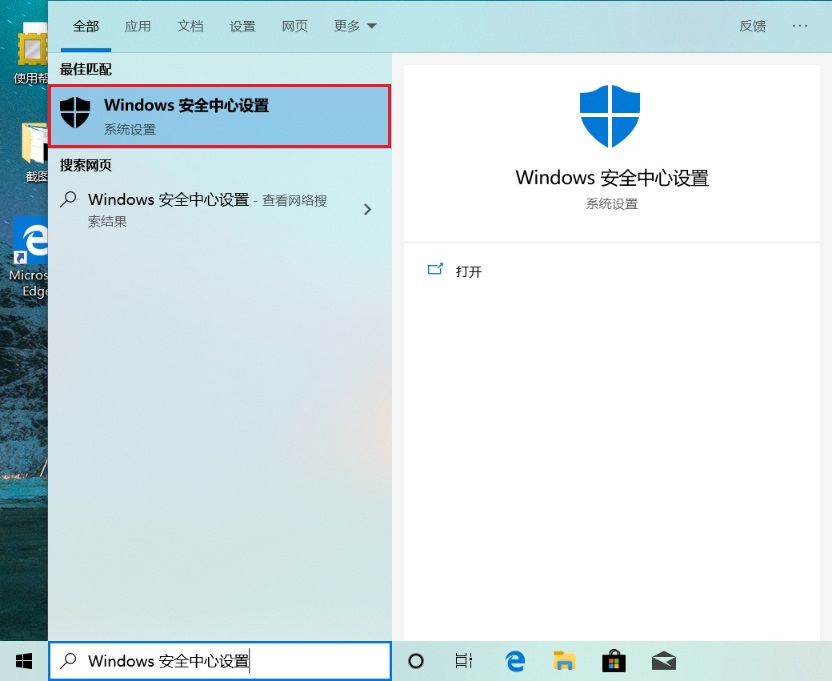 - 在任务栏搜索框中输入“Windows 安全中心设置”并打开。