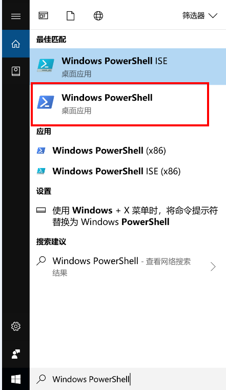 - 在任务栏搜索框内输入“Windows PowerShell”并打开。