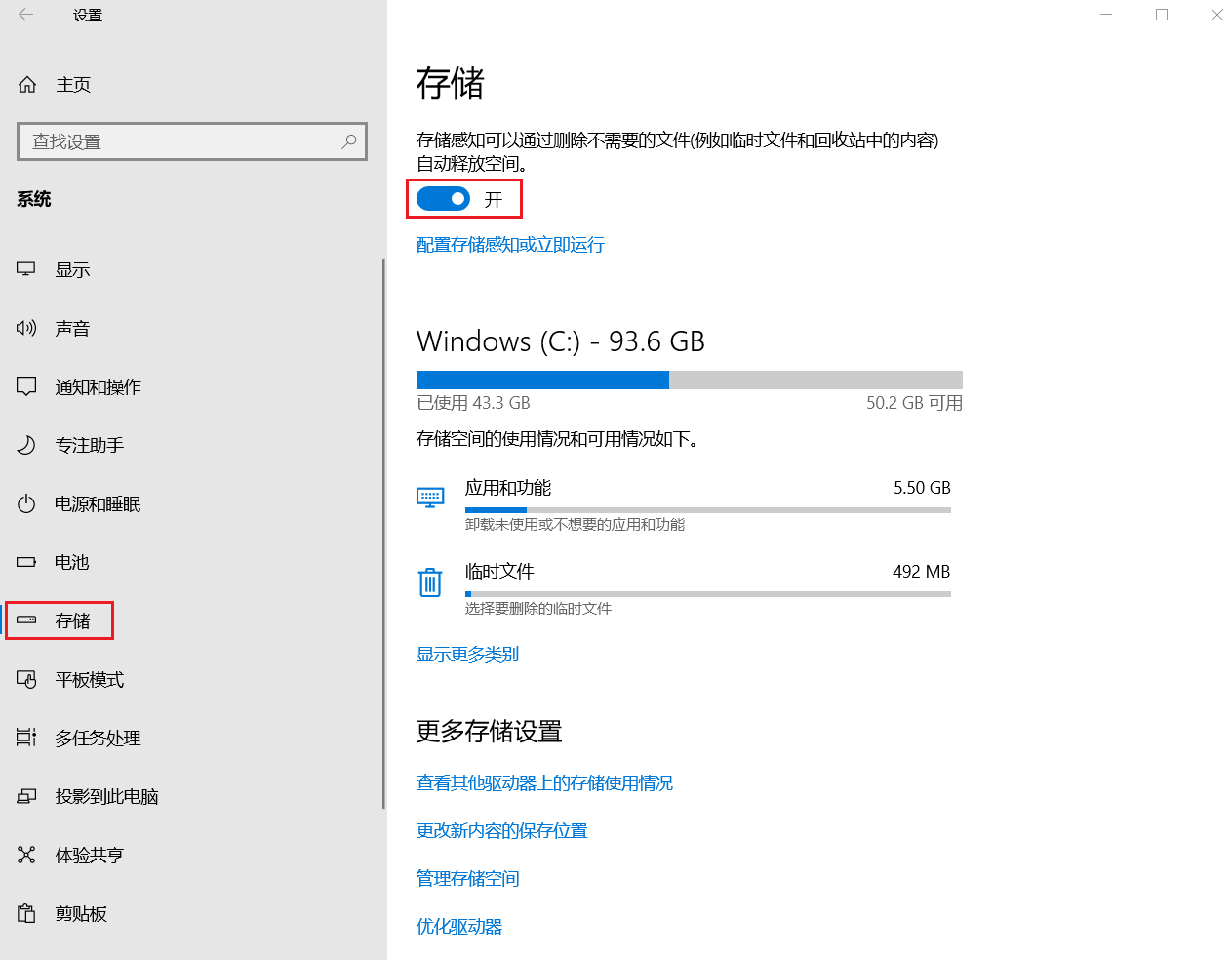点击“存储”,打开存储下方的开关按钮。