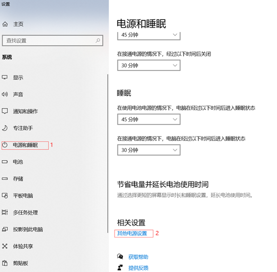 - 请选择 开始 ,然后选择 设置>系统 > 电源和睡眠 >其他电源设置。