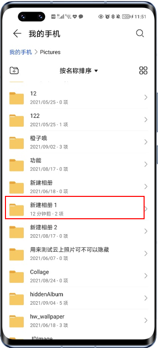 如下图:左图修改图库中新建相册1名称为“修改相册名称”,右图文件管理器中对应的文件夹名称并未同步修改。