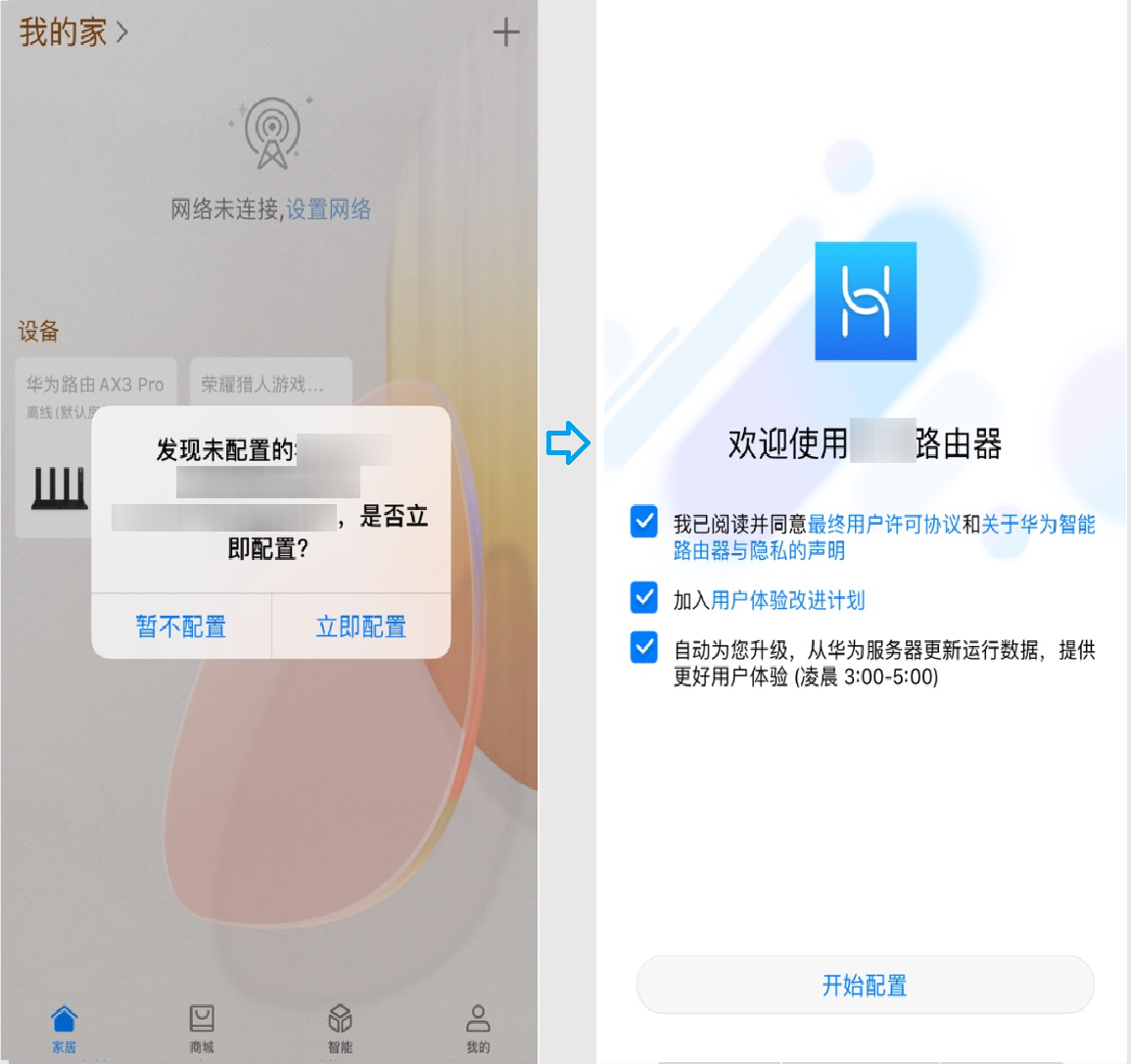 - 请打开智慧生活 App,点击立即配置 > 开始配置。