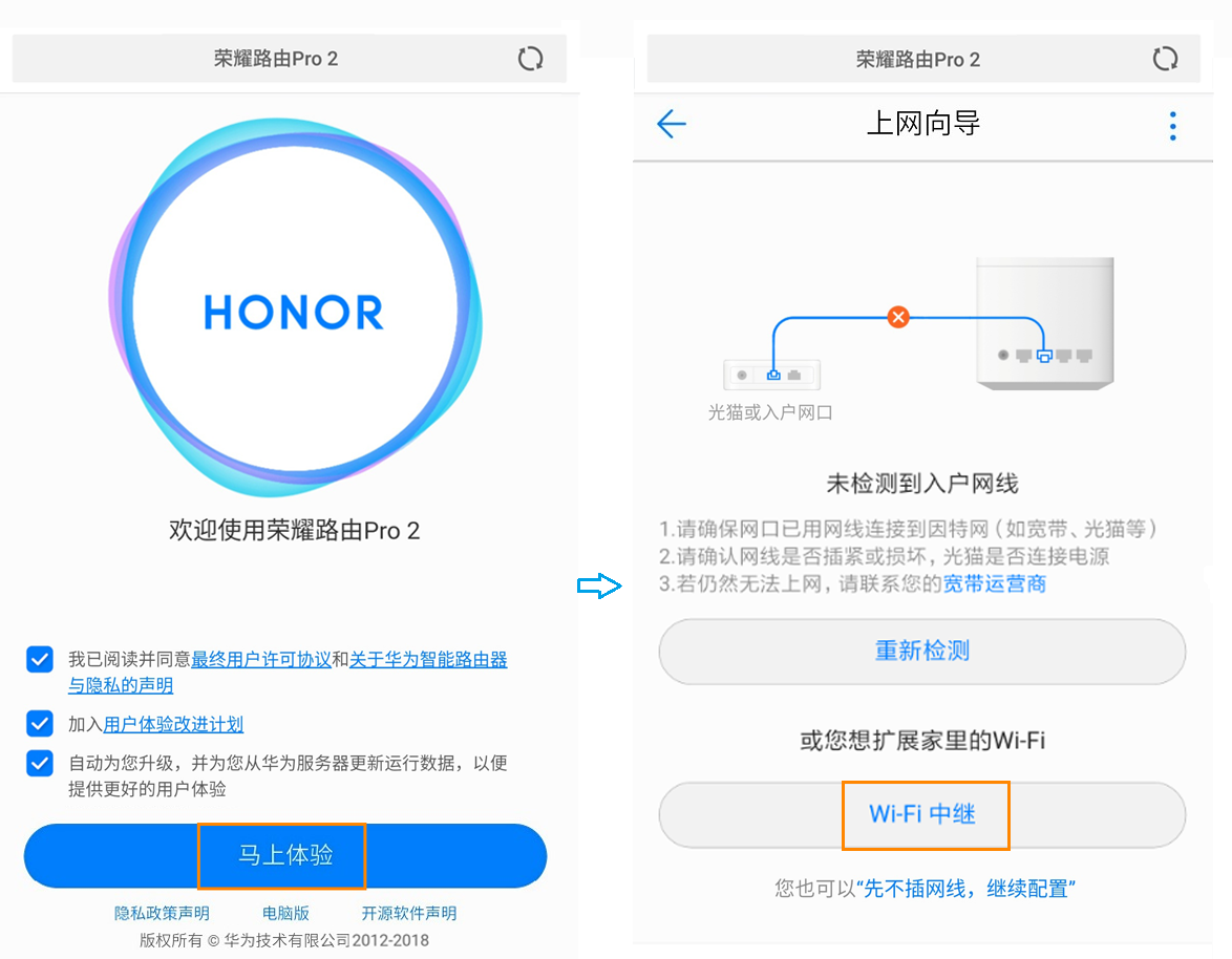 情况一:路由器首次配置时使用 Wi-Fi 中继功能扩展 Wi-Fi