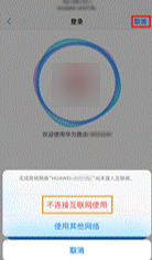 - 若是 iOS 系统设备,连接路由器 Wi-Fi 后可能会弹出提示界面。请点击界面右上角的取消,再点击不连接互联网使用,返回到 App 主页面。