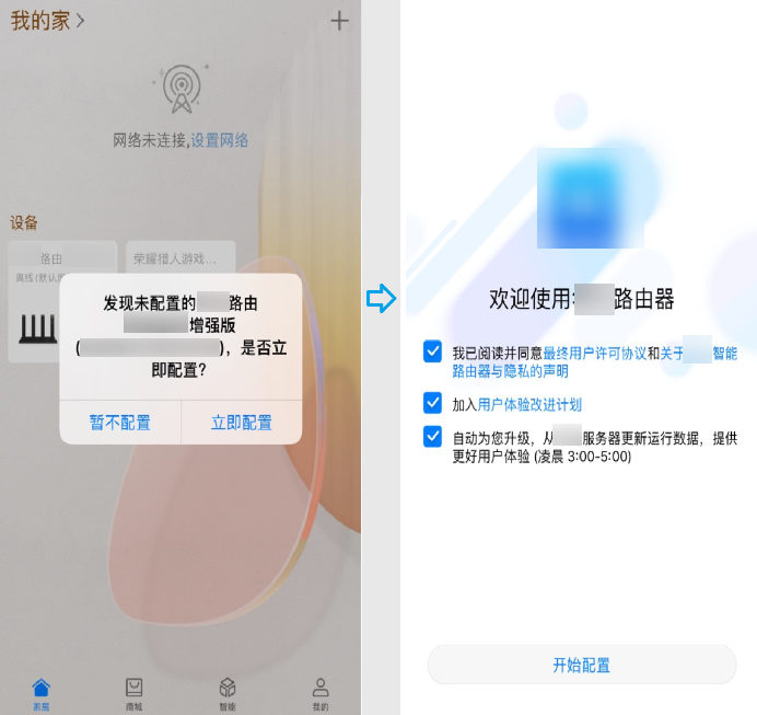 - 请打开智慧生活 App,点击立即配置 > 开始配置。