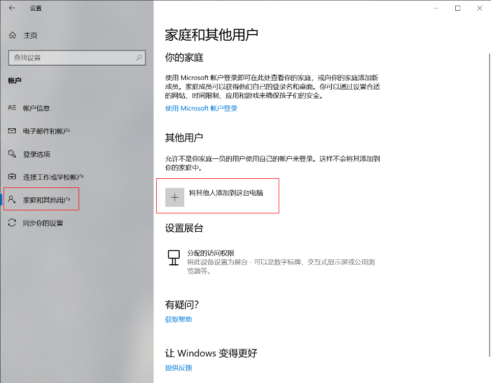 在设置>帐户>家庭和其他用户,选择“将其他人添加到这台电脑”,在弹出的对话框中,添加新用户并为新用户设置密码。