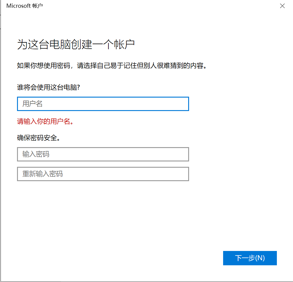 - 新建本地帐户时,需要先断开Internet连接。