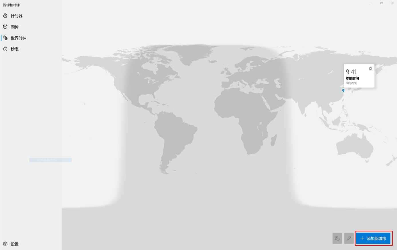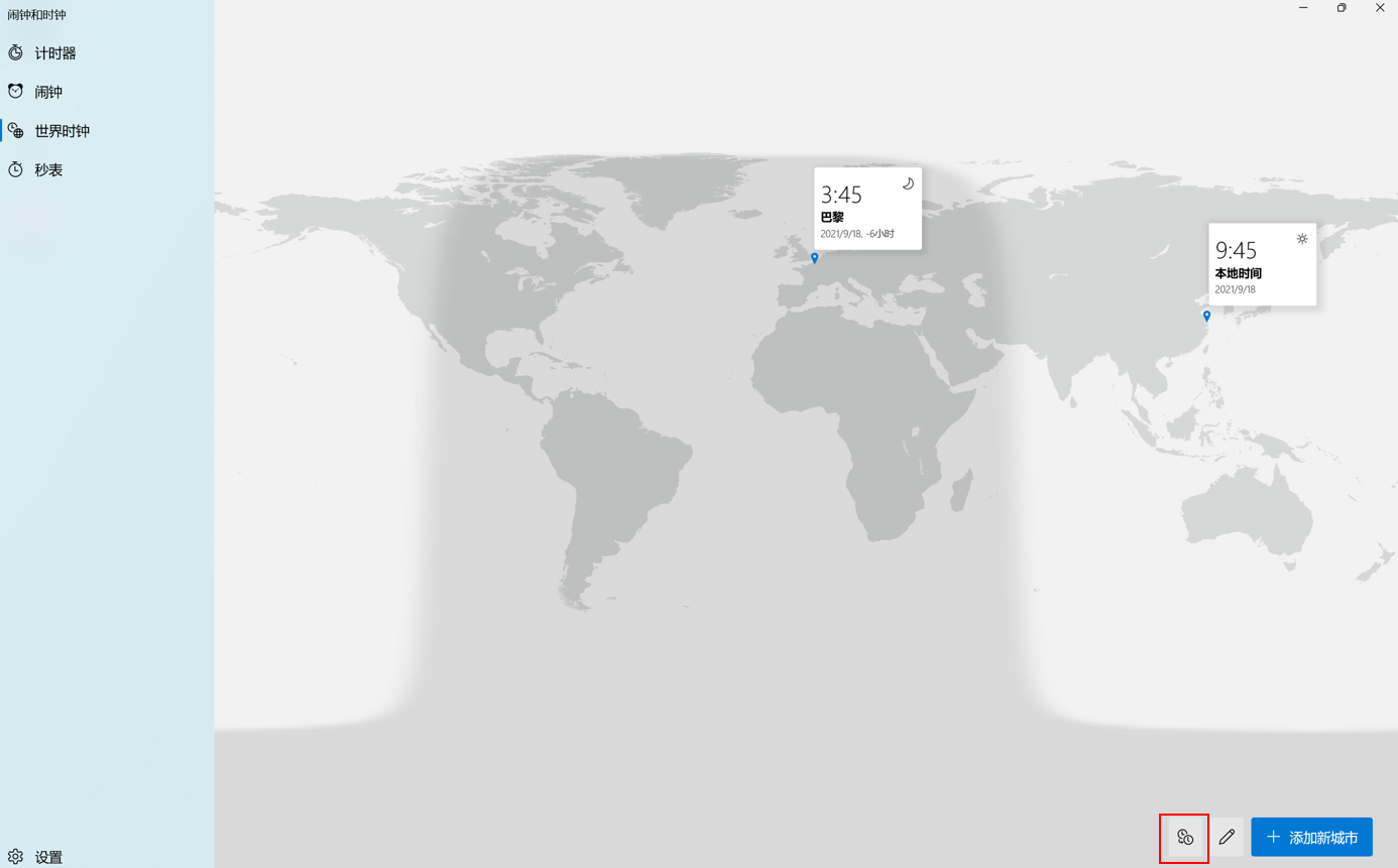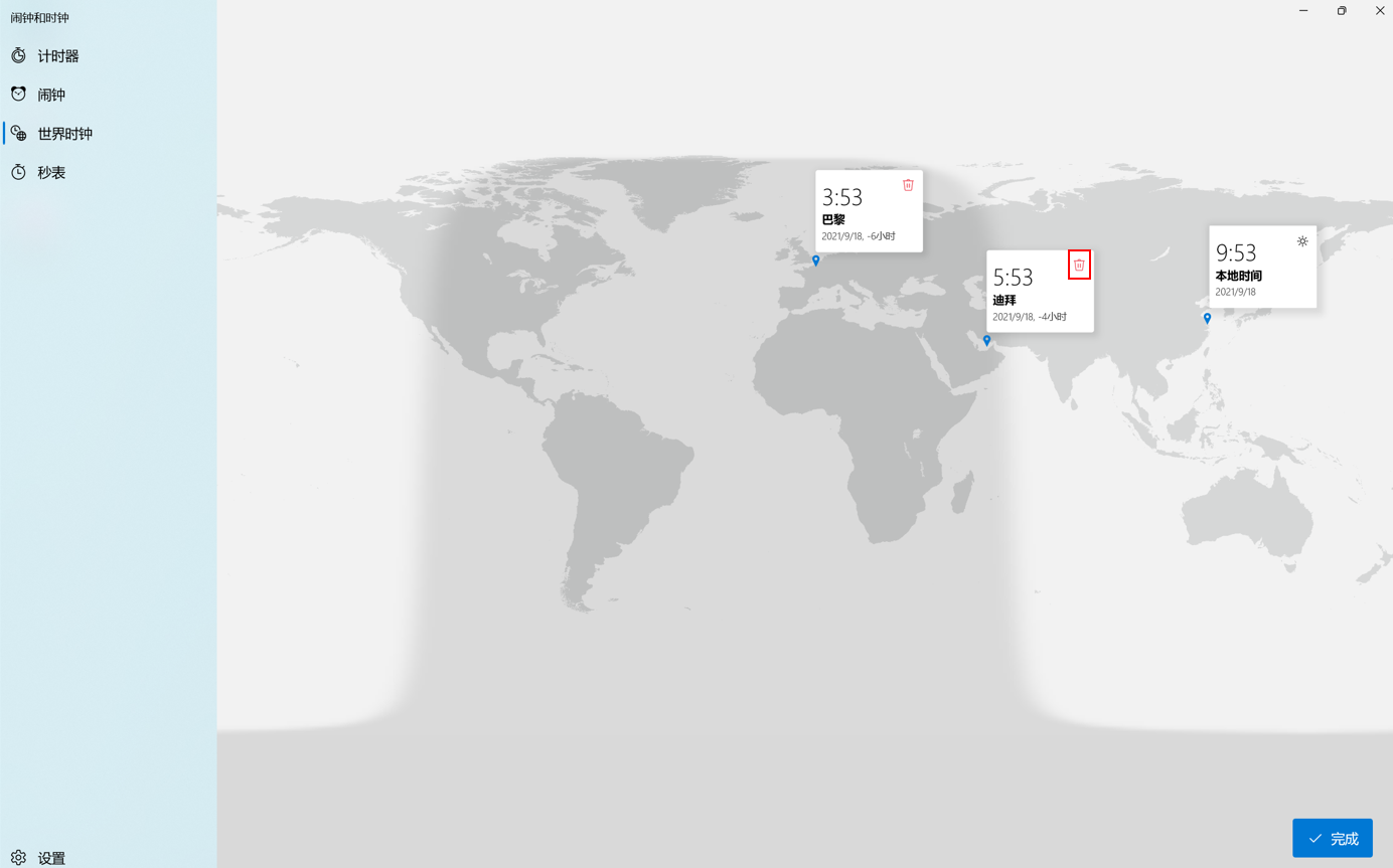 若要删除位置,点击右下角的“编辑时钟”按钮,在对应的城市图标上点击“删除”图标。