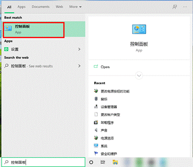 - 在任务栏搜索框中输入“控制面板”并打开。