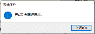 - 还原点创建完成后,系统提示“已成功创建还原点”,点击“关闭”退出。