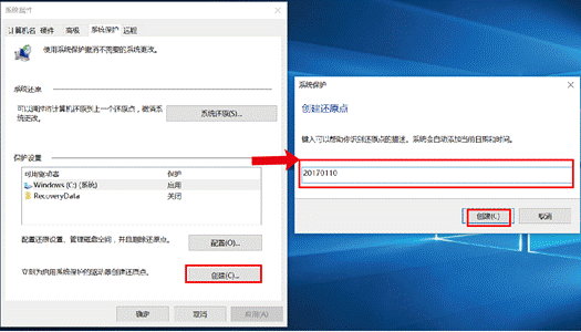 创建系统还原点: