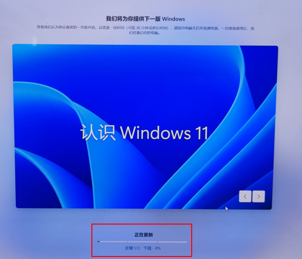 - 在弹出的系统更新界面中,可以通过屏幕下方中间进度条查看更新进度