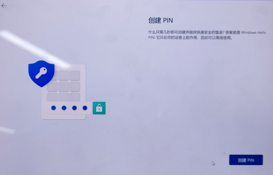 - 微软账户成功登录后,可以选择设置指纹或者面部识别解锁方式,也可以跳过,但PIN码必须设置;