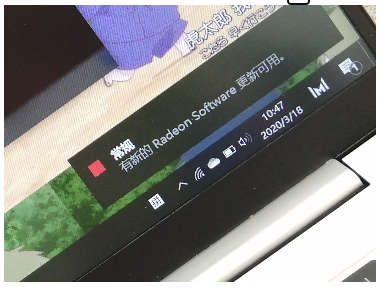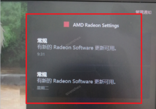 在AMD Radeon Settings应用程序或操作系统右侧通知栏中,提示有新的Radeon Software更新可用,如下图所示: