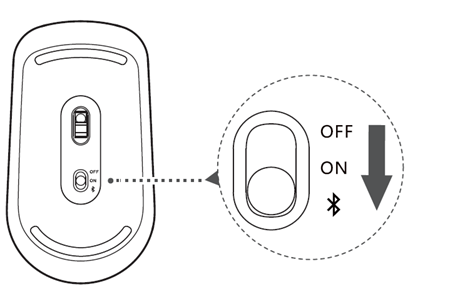 - 开关拨动的蓝牙鼠标:拨动鼠标开关至蓝牙搜索处维持3秒,发现鼠标蓝灯闪烁即设备处于“可发现模式”;