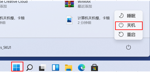 或者点击 Windows 主界面左下角“开始”,然后点击“电源”选项,在弹出的菜单下选择关机。观察故障是否能复现,如果没有关机慢的现象,无需做任何调整设置。