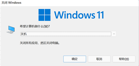按电源按键开机,进入 Windows 系统桌面后,继续等待2 分钟,期间不要打开任何应用程序,然后同时按下“Alt+F4”组合键,选择“关机”选项后,点击“确定”,如下图所示。