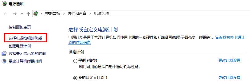 在弹出来的电源选项窗口左侧,点击“选择电源按钮功能”。
