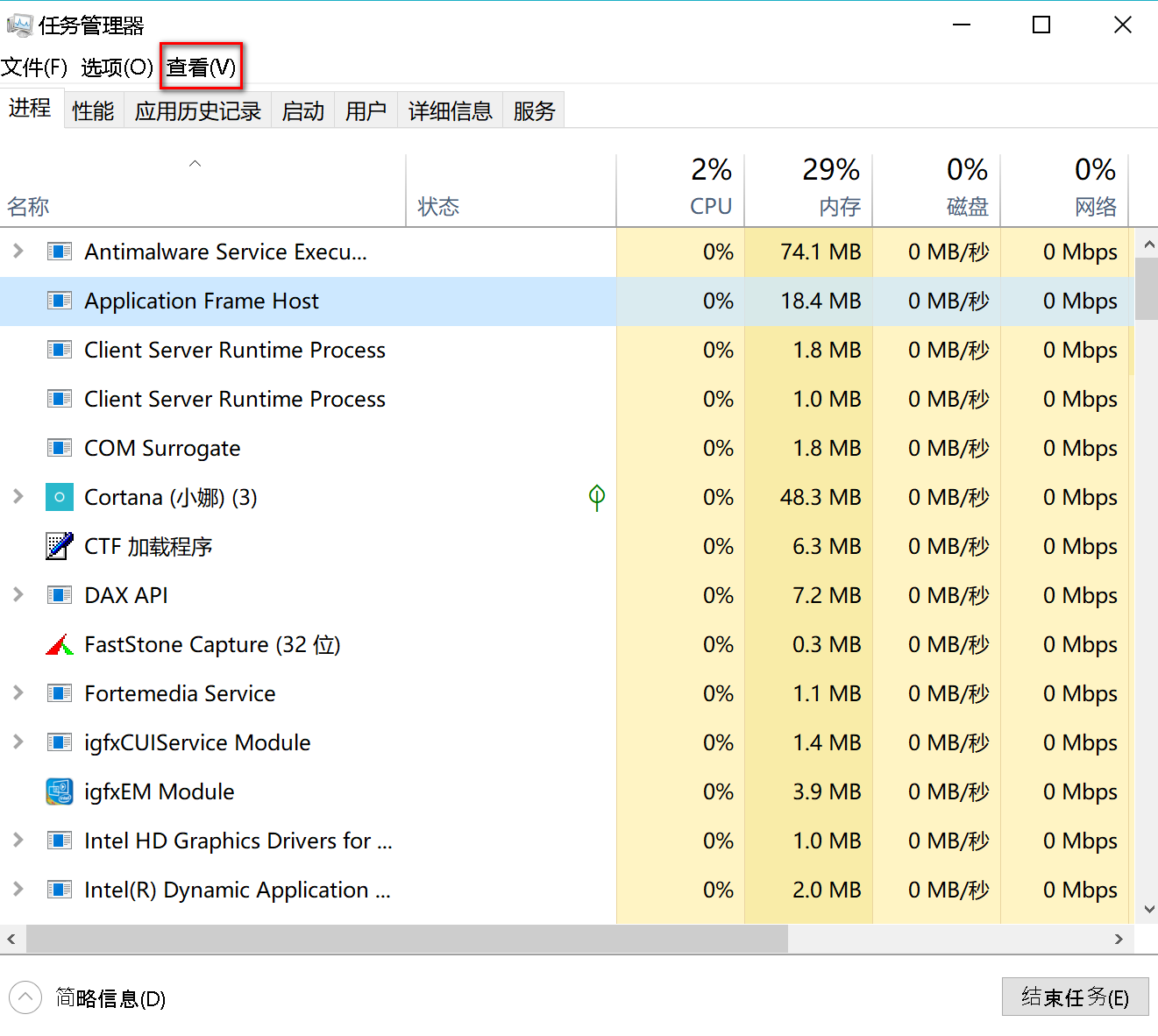准备关机前,退出所有的应用程序,并使用键盘组合热键“Ctrl+Alt+Del”调出任务管理器,点击“查看 > 按类型分组”,查看应用下面的程序,选中 CPU 和内存或磁盘占用较高的程序,点“结束任务”,关闭后台运行的程序。关闭所有程序后,看是否还有关机慢的现象。