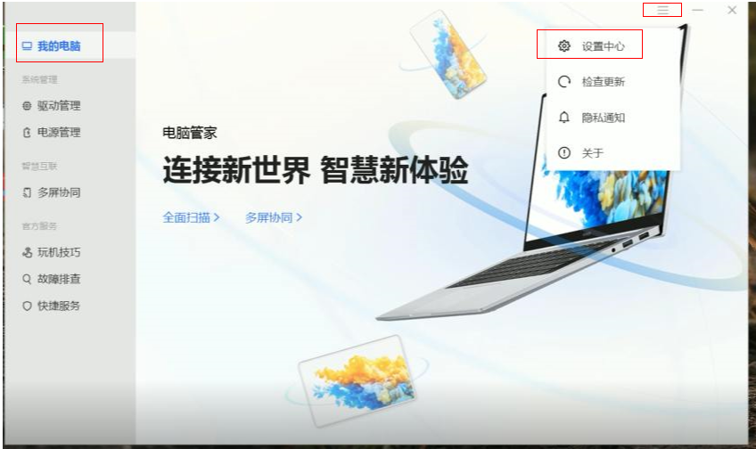 打开电脑管家点击设置图标,再点击设置中心,根据您的需要修改键盘闲置的关闭时间。