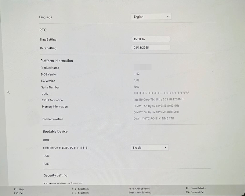- 开机或重启时,长按 F2 键进入 BIOS 设置界面。
