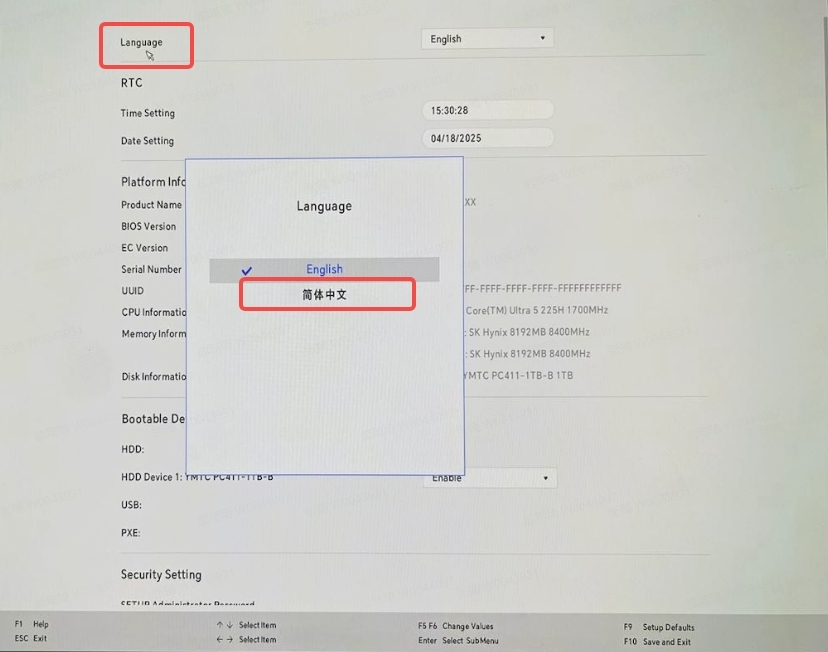 - 开机或重启时,长按 F2 键进入 BIOS 设置界面。