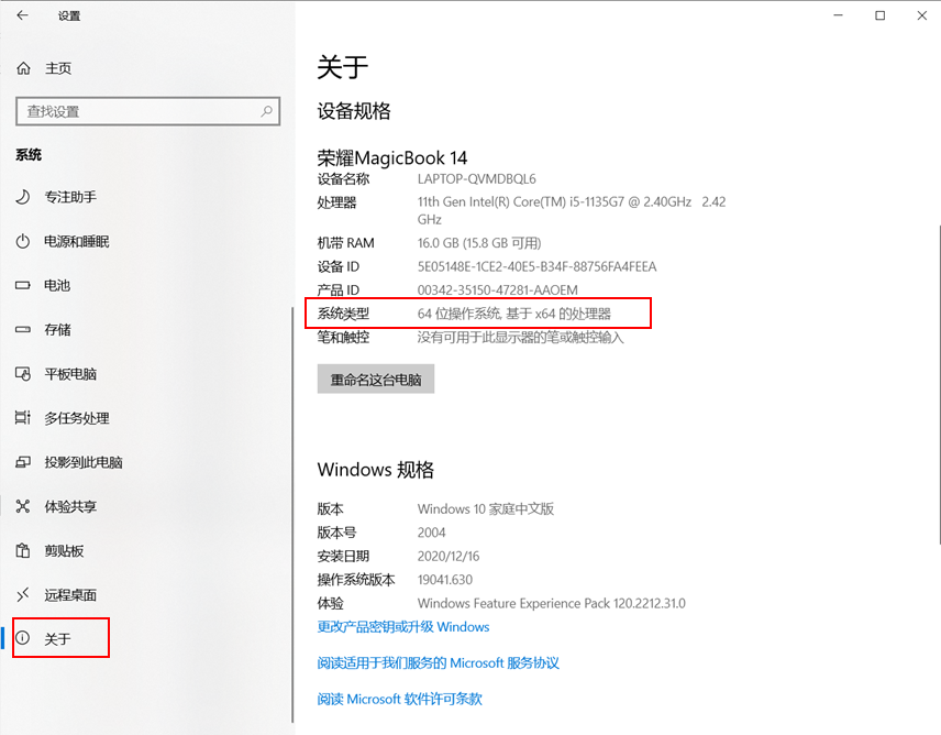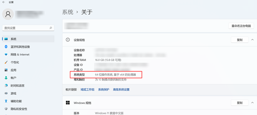 - 请确认您下载的软件的安装和运行环境。部分软件对运行的系统版本有严格的限制,如32位和64位限制。查看 Windows 系统版本如下:点击 Windows 图标键,点击设置 > 系统 > 关于,查看“系统类型”,例如:64位操作系统基于X64的处理器。