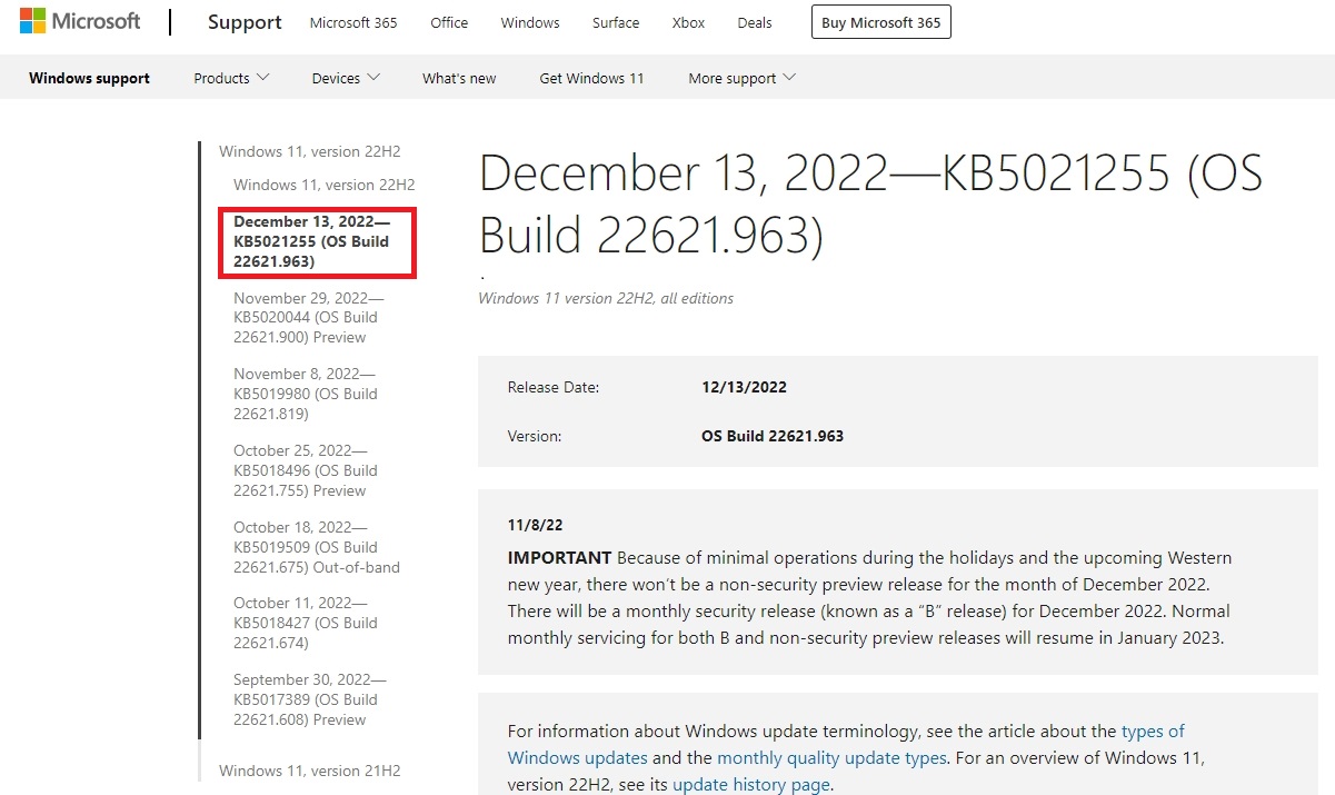 补丁链接:December 13, 2022—KB5021255 (OS Build 22621.963) - Microsoft Support