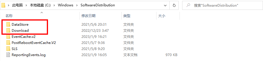 直接打开“C:\Windows\SoftwareDistribution”文件夹,删除其中Download和DataStore文件夹后,再进入笔记本设置 >Windows更新,点击检查更新,尝试是否更新成功 。