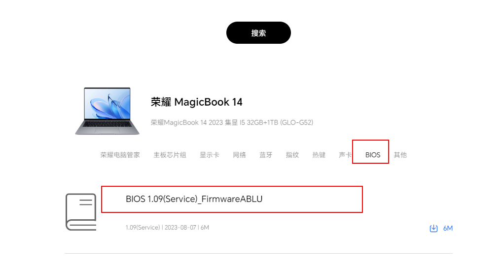 本文以荣耀 MagicBook 14为例进行介绍,注意在对应机型下载对应的BIOS升级包。
