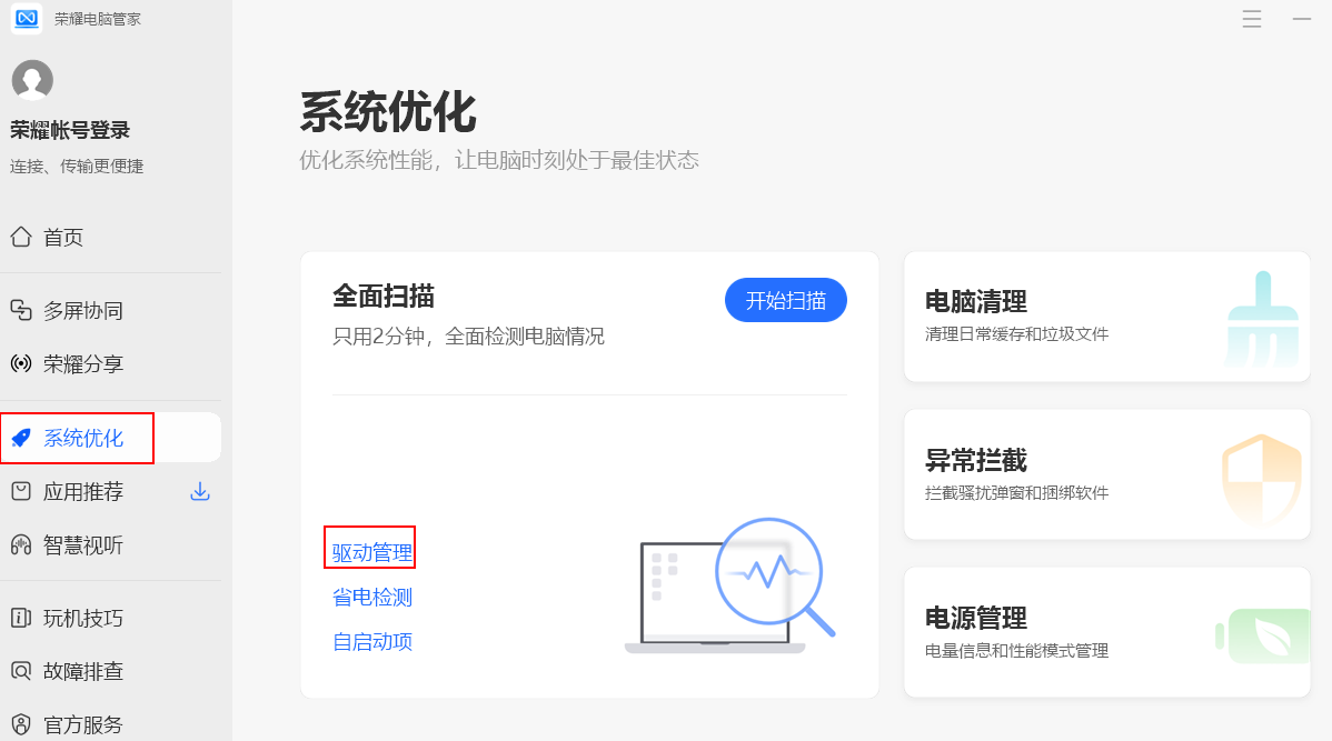 - 荣耀电脑管家打开“驱动管理”,找到您需要升级的BIOS固件,直接升级即可。