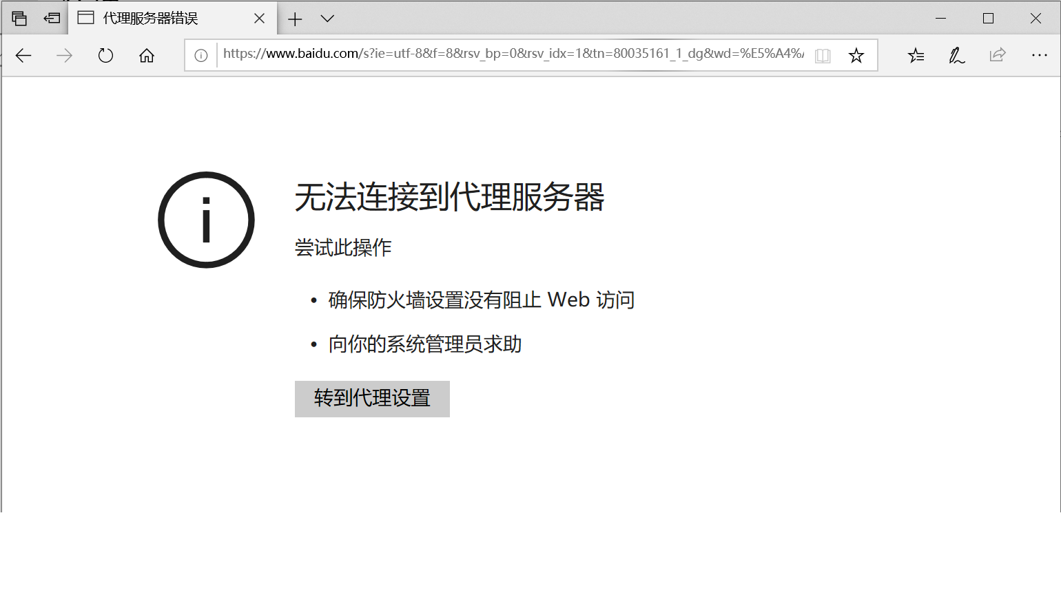 VPN服务器、软件或网络控件强制设定了代理服务器和修改了浏览器的代理设置。