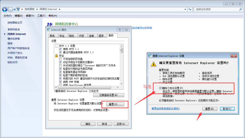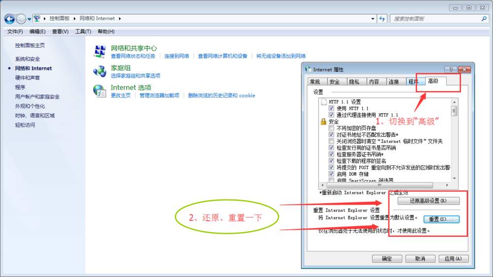 - 如果DNS和IP地址正常,按以下步骤修改网络和Internet配置:
