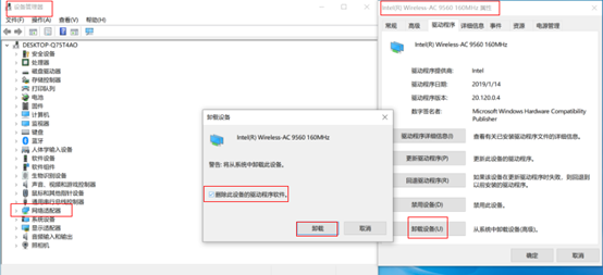 右键单击开始选择设备管理器,从设备管理器中找到网络适配器,右键卸载设备,勾选删除此设备的驱动程序软件,点击卸载,卸载后重启计算机。