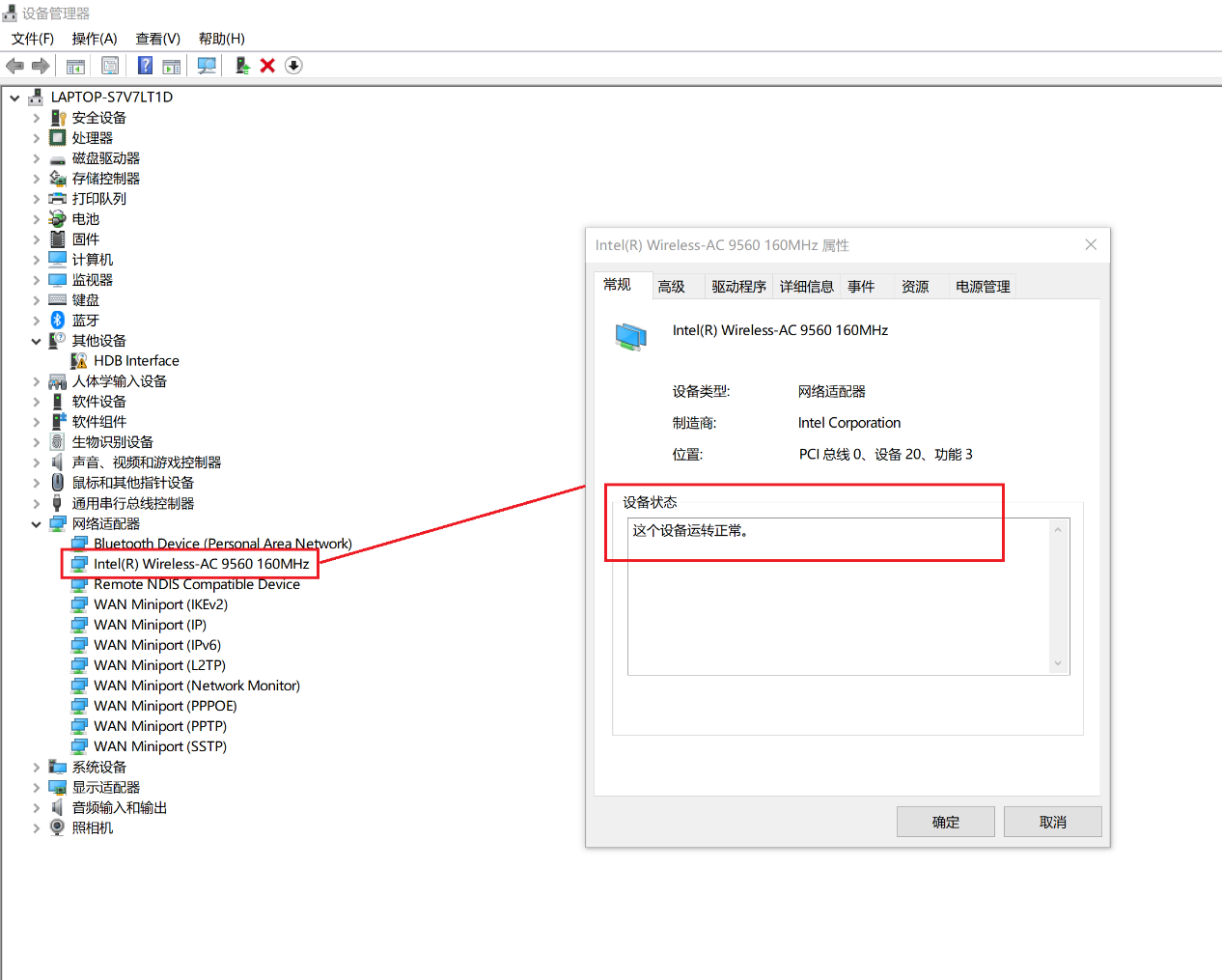 设备状态查看方法:设备管理器 >网络适配器 >双击网络适配器(Intel(R) Dual Band Wireless -)