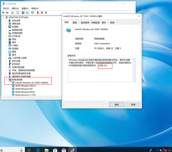 - 如果错误代码是52(软件安装异常/未经过数字签名)是因为安装了未经荣耀数字签名驱动导致系统无法识别到WLAN驱动,可以卸载驱动后安装带有荣耀数字签名的驱动即可解决。