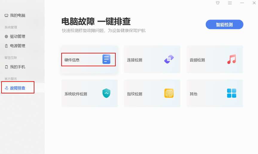 - 在电脑管家重新安装驱动。打开电脑管家>故障排除>硬件信息。