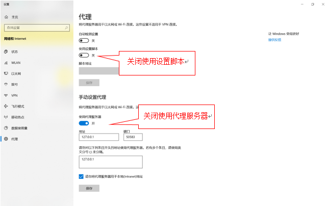 - 右键点击开始菜单>点击系统>点击主页>点击网络和Internet>点击代理>清除“手动代理设置”。