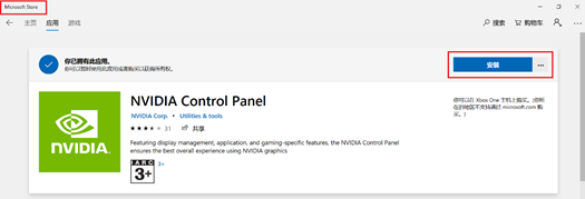 进入Microsoft Store中NVIDIA Control Panel的下载安装界面,点击下载安装;