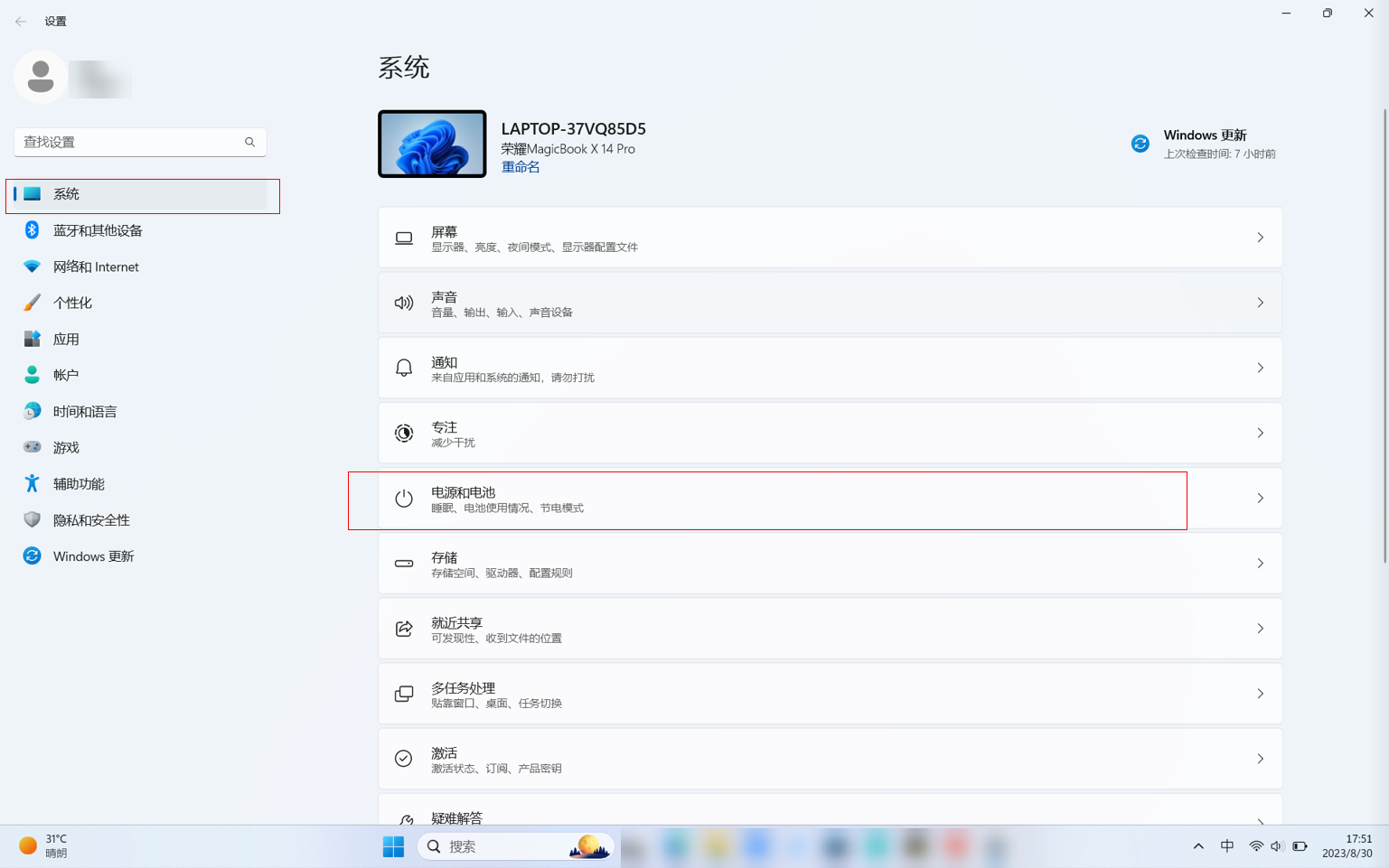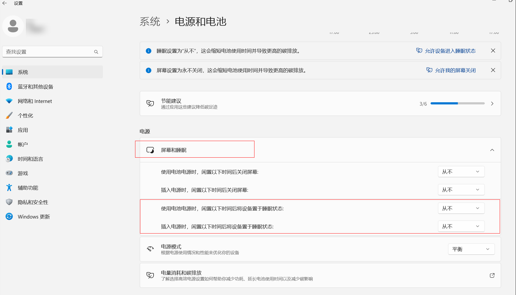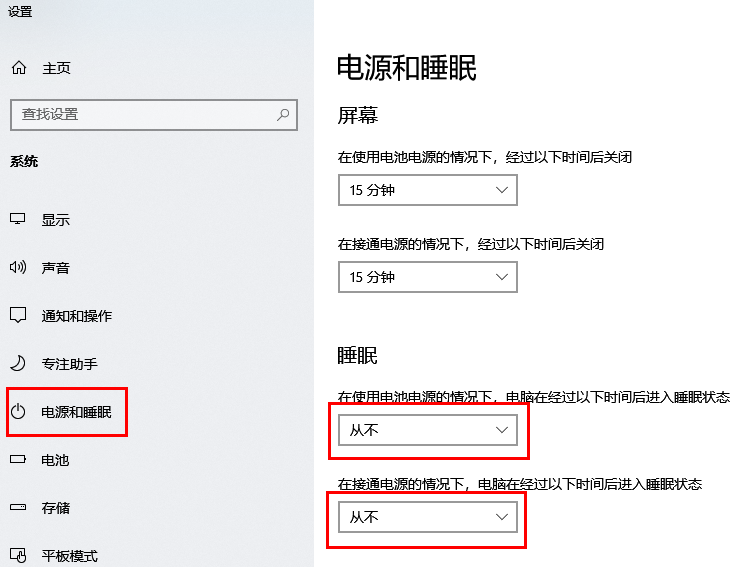 - 点击电源和电池,根据界面提示设置进入睡眠状态的时间。