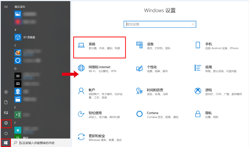 - 点击桌面 ,选择系统。