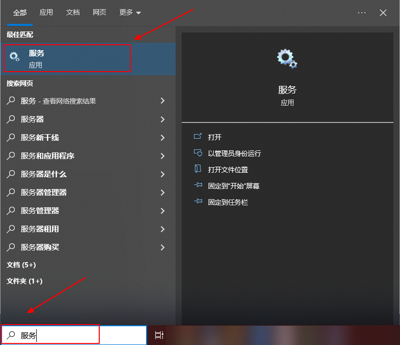 - 在任务栏搜索框输入服务。