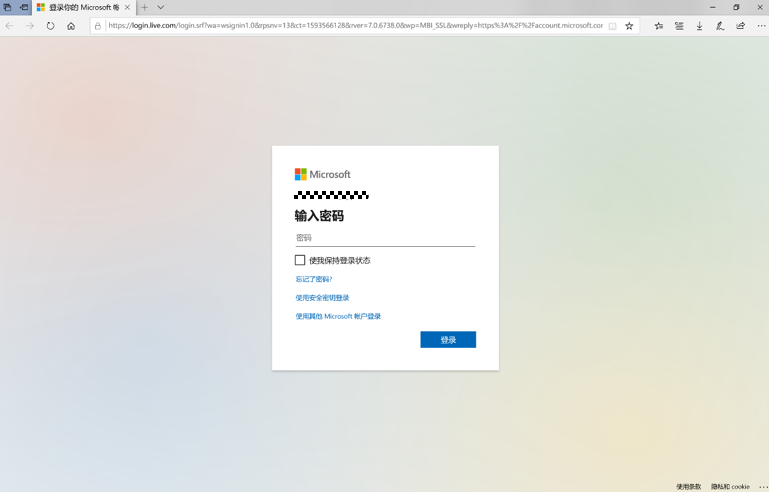 - 跳到微软帐户登录界面。