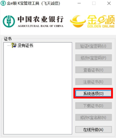 - 华大、握奇、飞天诚信:“系统选项”>不勾选“使用农业银行时,在安全环境下输入用户口令”。